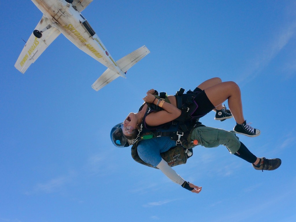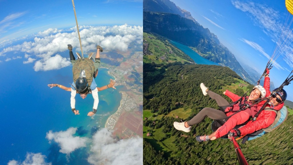 I’ve had the pleasure of experiencing both, and I couldn’t have been happier with where I did them. My first skydive was in Oahu, Hawaii, over the breathtaking North Shore, and a few years later, I went paragliding over the Swiss Alps in Interlaken. The settings were nothing short of magical—the clear blue waters of Hawaii’s coastline, the lush mountains, and the endless ocean in one, and the towering snow-capped peaks, deep valleys, and turquoise glacial lakes of Switzerland in the other. Both experiences were pure magic.