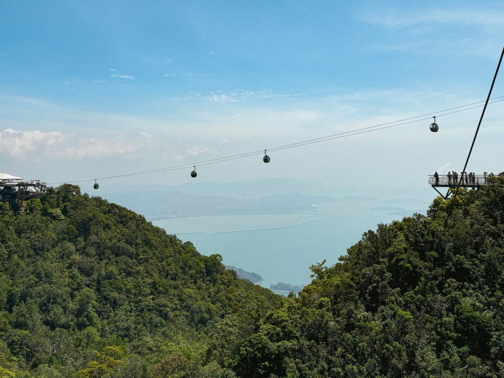 The ride up the cable car is peaceful and incredibly picturesque. As you ascend, you’ll be treated to endless views of the ocean, surrounding islands, and Langkawi’s lush landscape, dotted with rice fields and dense greenery. The line moves fairly quickly, and the ride itself is absolutely worth the wait. The earlier you arrive, the shorter you’ll wait, and the more quiet it will be at the top!