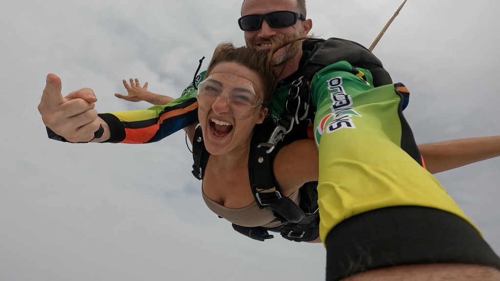 The freefall lasts about 20 seconds, but in the moment, it feels like time completely slows down. You’re plummeting toward the Earth, the wind roaring in your ears, and your body is in full fight-or-flight mode—except instead of fear, you feel pure freedom. It’s a mix of screaming, laughing, and feeling completely alive in a way that’s impossible to describe unless you’ve done it.